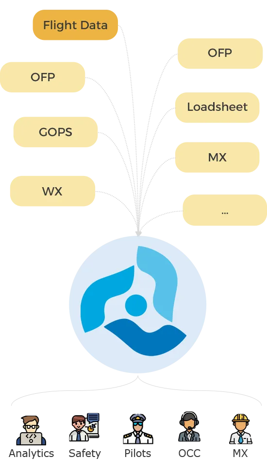 The platform processes standard flight recorder formats such as ARINC 717/767 (QAR/FDR) or event CSV time-series data. It also integrates additional sources including maintenance, weather, load sheets, crew schedules, and flight plans. If it’s relevant to flight operations, it can be unified in the platform.